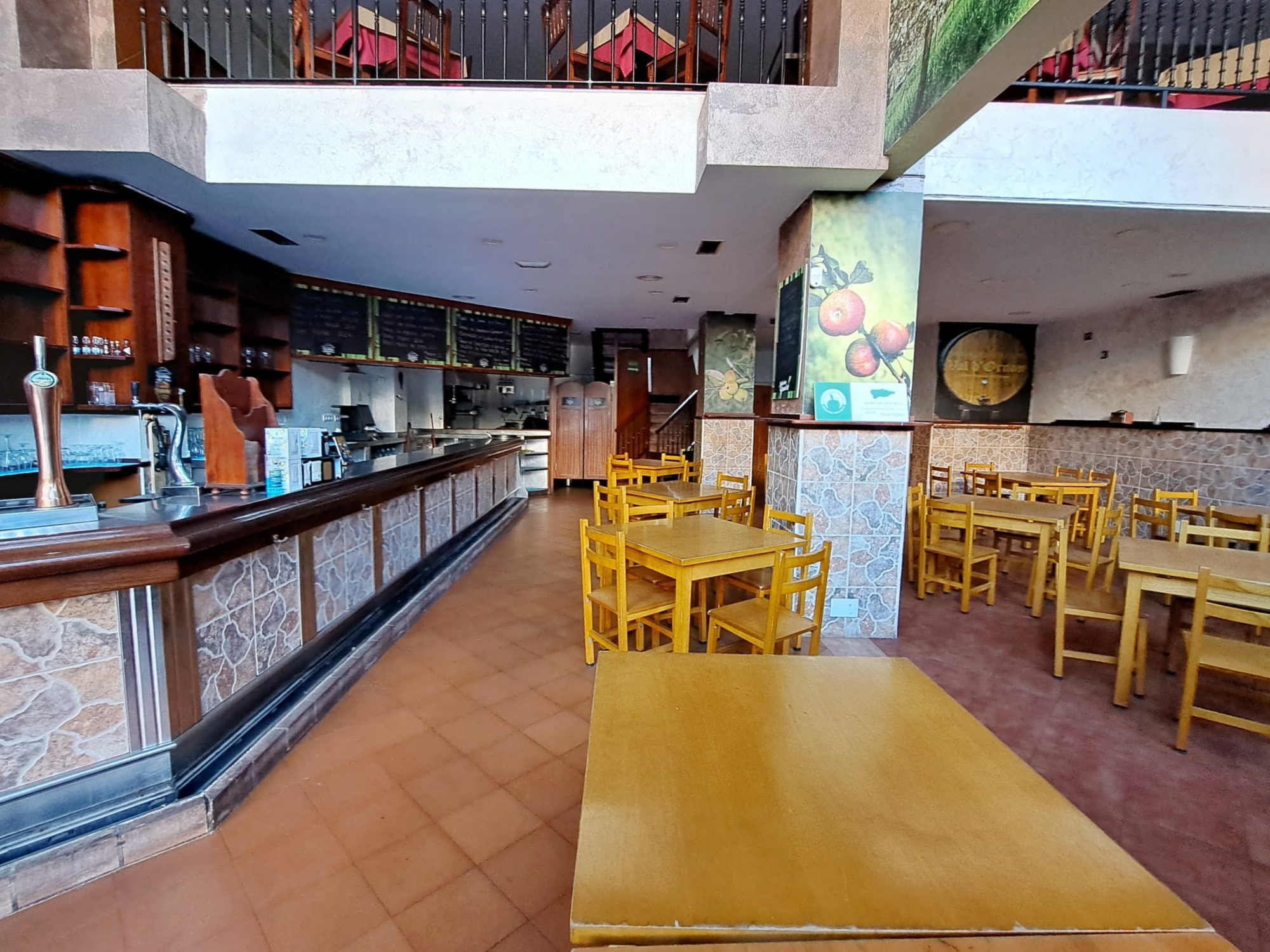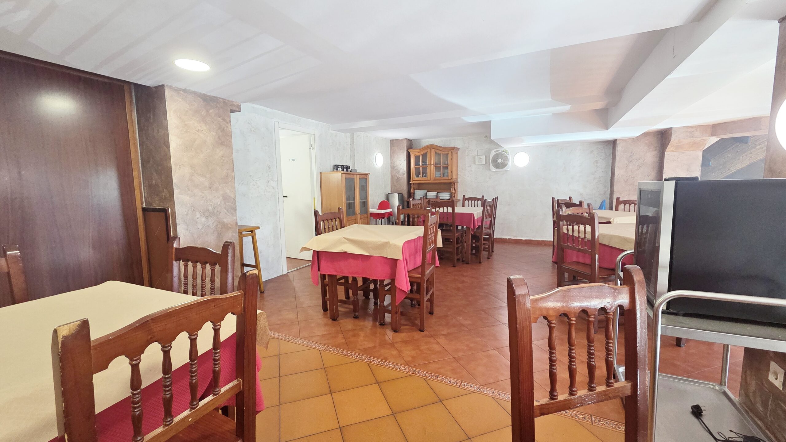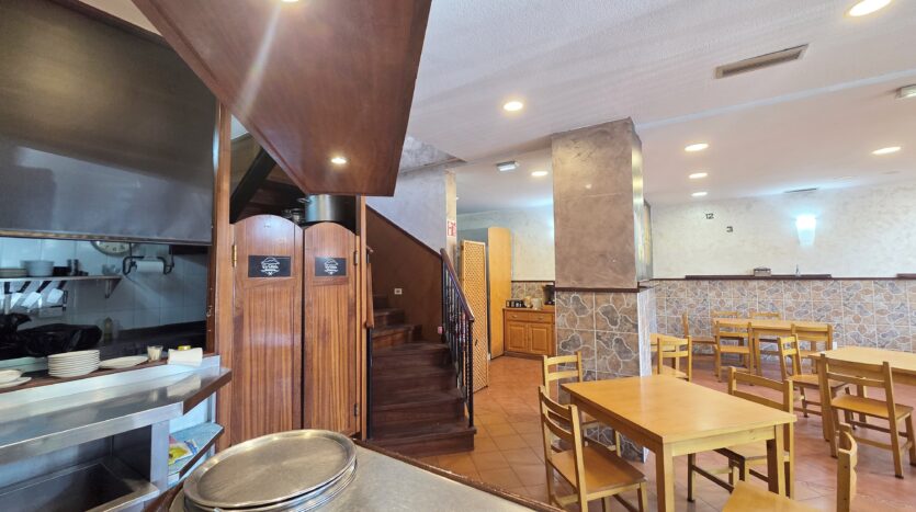 Restaurante amplio, de grandes dimensiones, orientado al Oeste en fachada principal, y con ventanas al Este en fachada posterior. Se trata de una oportunidad para emprendedores de la hostelería. El restaurante poseé un amplio comedor en planta baja, y barra de 10 metros, en esta misma planta se encuentra la cocina.