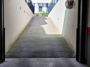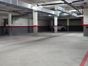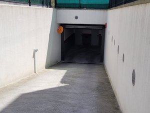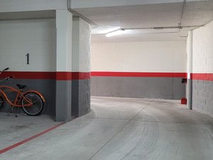 Plaza de garaje en sótano – 1 del Edificio «FLVMINIS» de obra nueva en La Coría, tiene 16 m2 útiles, portón automático y rampa de acceso.